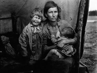 Olykor egyetlen emberi alakról vagy arcról készült portré is képes kifejezni egy teljes történelmi korszakot vagy szituációt: ezek közé tartozik az amerikai szociofotózás úttörőjének megrendítő felvétele egy hajléktalan asszonyról és gyermekeiről, amely nemcsak az 1930-as évek gazdasági világválságának megtestesítőjévé, de a világ egyik legtöbbet idézett fotójává is vált. A képen szereplő nő – akinek kiléte évtizedekig rejtély maradt – azonban sohasem profitált a hírnévből, sőt, inkább átkozta azt.