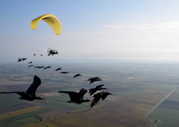 Sárga siklóernyővel és propellerrel felszerelt, apró repülőgép halad idén ősszel valahol az égben Ausztria és Spanyolország között. A járművet furcsa madarak csoportja követi: a 36 madár tolla fekete, kopasz fejükön hosszú, hajlott csőr található. Tarvarjak, amelyek évszázadokra eltűntek Közép-Európából, ám a kutatók erőfeszítéseinek köszönhetően a 2000-es évek elejére újra megjelentek. Az állatok és a biológusok azonban egy hatalmas problémával szembesültek: a tarvarjak időközben elfelejtették, hogy hogyan és milyen útvonalon kell télire elköltözniük.
