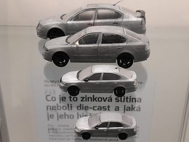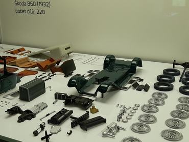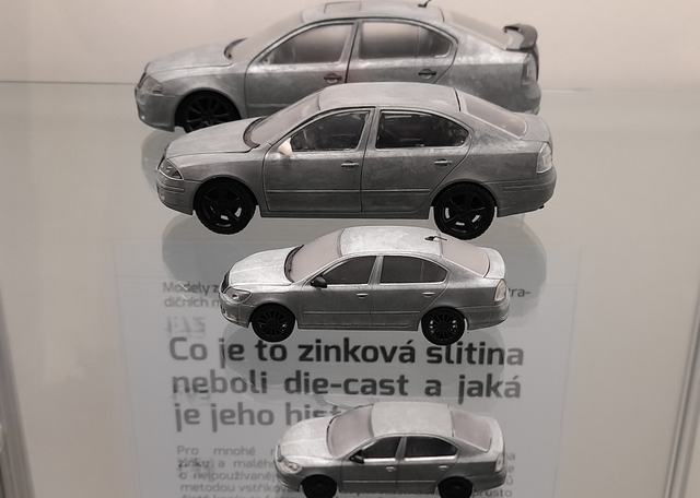 Odabenn a falak mentén hatalmas vitrinek sorakoznak, tele apró csodákkal: több mint 3000 autómodell kelleti magát, mind cseh gyártmány, és az ikonikus Škoda, Tatra, valamint Praga márkákat mutatja be, de a kezdetek kezdetét megidéző Laurin & Klement, sőt Jawa motorkerékpárok is vannak köztük. Valamennyi az Abrex nevű cseh modellgyártótól származik, amely a 6 centiméteres 1:72-estől a 25 centiméteres 1:18-asig négy méretarányban kínálja ezeket a miniatűr mesterműveket. A legnagyobbak 228 darabból állnak össze, és még azt is láthatjuk, milyen technológiával születnek meg a fém öntőformákon.