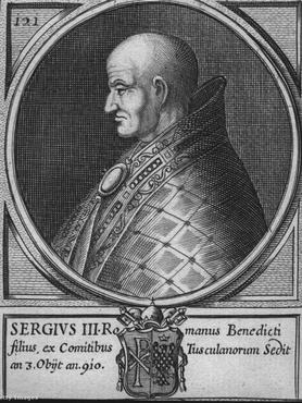 a feljegyzések szerint III. Sergius pápa viszonyt folytatott egy Marozia nevű nemesasszonnyal.