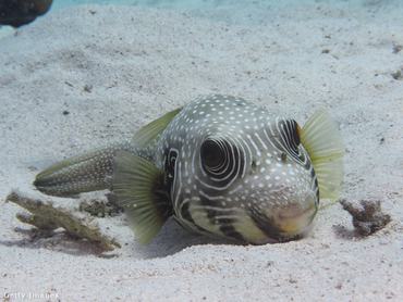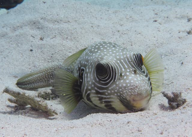 A magyar nyelv sokféle néven ismeri azt a halat, mely földönkívüliek keze munkájának tulajdonított víz alatti formákat hoz létre: Fehér foltos gömbhal, fehér uszonyú gömbhal, fehér puffer. De vajon mi az oka annak, hogy ilyen látványos nyomot hagy maga után, ha udvarol?