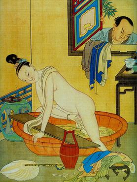 Amikor egy pár összeházasodott, selyemre festett erotikus képeket ajándékoztak nekik, hogy ezek segítségével bővítsék ismereteiket és alkalmazzák is a tanultakat a későbbiekben. Ezek között akár csoportos szexet, partnercserét ábrázoló képek is lehettek, de ez senkiben nem keltett megütközést.
