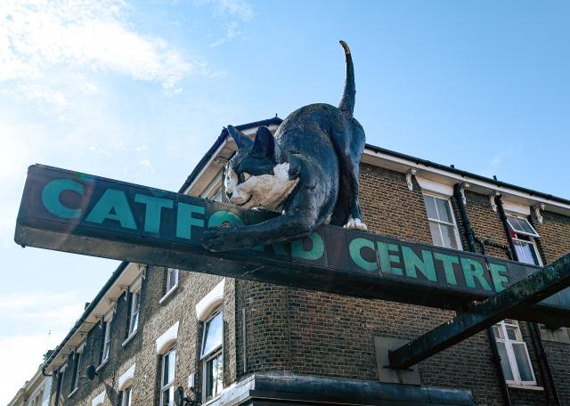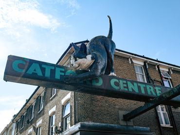 A Catford Center tetején kuporgó óriási cicát 1974-ben emelték az épület tetejére, Owen Luder és Rodney Gordon építészeknek köszönhetően. Az üvegszálas szerkezetet az immár fizetésképtelenné vált Embassy Signs nevű cég gyártotta és szerelte fel.