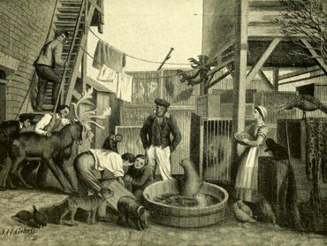 „Ezért a St. Pauli Spielbudenplatzon lévő házunkbankét hatalmas, fából készült kádban kiállította az állatokat, belépődíjként egy hamburgi shillinget (= körülbelül egy pennyt) kért” – emlékezett vissza Carl Hagenbeck önéletrajzában .