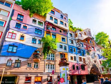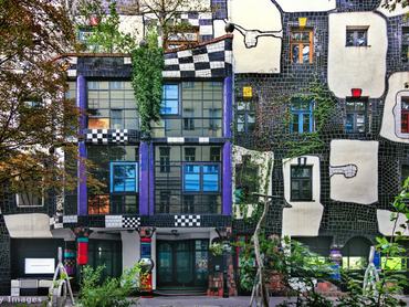 Egyik leghíresebb épülete a bécsi Hundertwasser-ház. Első pillantásra felismerhető, hogy ki tervezte, senki más nem álmodott meg ehhez hasonló színes, szabálytalan formájú, sajátosan egyedi épületeket. Közelebbről szemügyre véve még több furcsaság tűnhet föl: a padló egyenetlen, hullámzó, a tetőt üveg és föld borítja, a szobákban olykor fák nőnek, amelyek ágai az ablakokon bújnak ki. Munkájáért nem fogadott el díjazást, elég volt neki, hogy – ahogy ő fogalmazott – „megakadályozza, hogy valami csúnya dolog épüljön föl a helyén”.