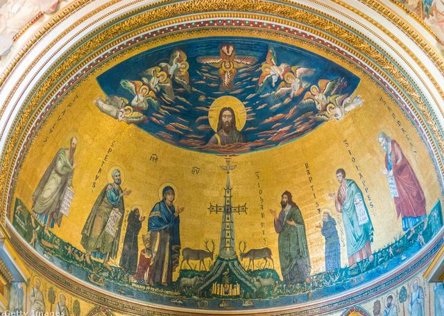 Az apszis díszítése bibliai képeket idéz