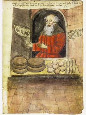 A legolcsóbb, legkönnyebben beszerezhető és viszonylag sokáig elálló étel a kenyér volt, amely a középkori szegények étrendjének alapját képezte, s a városlakók legtöbbször a pékségben jutottak hozzá. Ma már furcsán néznének ránk, ha egy jókora húsdarabbal állítanánk be a pékhez, és azt kérnénk tőle, hogy csomagolja be a kenyérbe, és azzal együtt süsse meg, de a középkorban ez teljesen megszokott volt: 1350-ben Londonban még törvényt is hoztak, amely megtiltotta a pékeknek, hogy egy pennynél többet kérjenek a saját hússal érkező vásárlóktól.