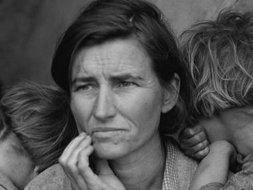 Olykor egyetlen emberi alakról vagy arcról készült portré is képes kifejezni egy teljes történelmi korszakot vagy szituációt: ezek közé tartozik az amerikai szociofotózás úttörőjének megrendítő felvétele egy hajléktalan asszonyról és gyermekeiről, amely nemcsak az 1930-as évek gazdasági világválságának megtestesítőjévé, de a világ egyik legtöbbet idézett fotójává is vált. A képen szereplő nő – akinek kiléte évtizedekig rejtély maradt – azonban sohasem profitált a hírnévből, sőt, inkább átkozta azt.