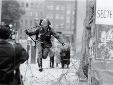A Német Demokratikus Köztársaság fővárosát, Kelet-Berlint és a Német Szövetségi Köztársasághoz tartozó Nyugat-Berlint elválasztó, ellenőrző pontokkal és védelmi zónákkal határolt betonfal 28 éven keresztül jelképezte Európa hidegháborús kettéosztottságát. A tűzparancs ellenére rengeteg NDK-polgár próbált a falon átjutva Nyugatra menekülni: az egyik leghíresebb, a fotótörténetbe is bevonult kísérlet egy fiatal határőr, Konrad Schumann nevéhez köthető, aki keresztülugrott a még épülő falon.