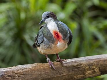 A luzoni csillagosgalamb a vörös tollazattal udvarol