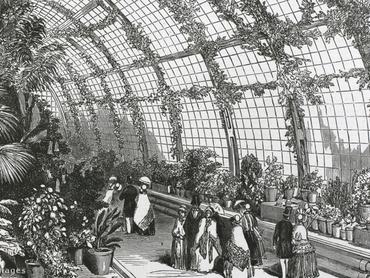 Joseph Paxton mérnök, építész és kertész volt. Meglehetősen fiatalon, 20 évesen a Cavendish-család birtokának főkertésze lett. Itt építtette föl a Great Conservatory (nagy télikert) névre keresztelt hatalmas üvegházat. A 84 méter hosszú, 37 méter széles és 19 méter magas épület akkoriban Anglia legnagyobb, elsősorban üvegből készült konstrukciója volt. Belsejét az Egyenlítő tájáról szállított növényekkel rendezték be: pálmák, hatalmas fák, páfrányok, mohák, sziklák és medencék segítségével komplett esőerdőt alakítottak ki. Egzotikus madarak röpködtek az ágak között, a tavakban sosem látott színpompás halak úszkáltak. A trópusi klímát forró vizes fűtéssel hozták létre – a kazánokból, amelyekhez a szenet föld alatti alagutakon keresztül szállították, több mint 10 kilométeres csőhálózat indult.