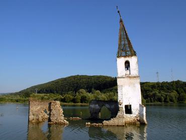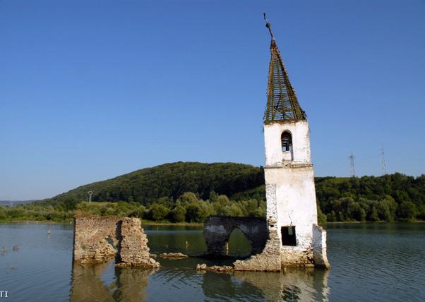 A Maros megyei Erdőszentgyörgytől öt kilométerre fekszik Bözödújfalu egykori, ma már víz alatt nyugvó települése. Már 1566-ban megemlítik az okiratok, a Küsmöd-patak völgyében letelepülő családok alapították a falut a középkorban. A leírások szerint már ekkor volt temploma is, mely helyére 1740-ben újabb fatemplomot, majd negyvennégy évvel később kőtemplomot emeltek. Ez volt az a torony, mely a Ceaușescu-féle erdélyi falurombolás szimbólumaként emelkedett ki a hatalmas felületű víztükör alól.