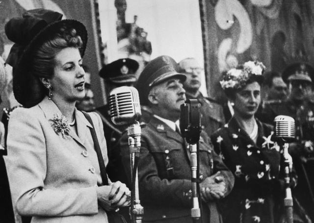 A korábban az európai diktatúrákban szolgálatot teljesítő katonai attasé Mussolini és Hitler eszmerendszerén szocializálódott, s a nemzeti és szociális alapokon álló rendszert vezetett be a munkások számára. Miután egy katonai puccsal eltávolították, és egy börtönszigetre zárták, az asszony egy nagyszabású munkástüntetést szervezett, ahol mintegy 300 000 ember követelte szabadon bocsátását. Ennek köszönhetően szabadon engedték, és pár napra rá össze is házasodott Juan és Evita.