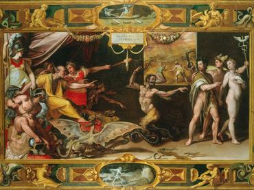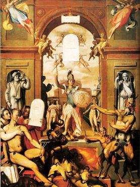 Federico Zuccari az olasz manierizmus elismert festője volt, ám a kritikát nem szenvedte: rendszeresen festményein reagált a valós vagy vélt sérelmeire, míg végül XIII. Gergely pápa száműzte Rómából.