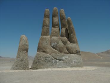 A Dél-, Közép- és Észak-Amerikán át, körülbelül 30 ezer kilométer hosszan kanyargó pánamerikai autópálya 1309-es kilométerjelzőjénél egy kavicsos út vezet egy hatalmas, ég felé nyújtózkodó cementkézhez, amely közel 11 méter magasságban emelkedik ki a száraz, meleg homokból. Ez a sivatag kezeként ismert La Mano del Desierto.