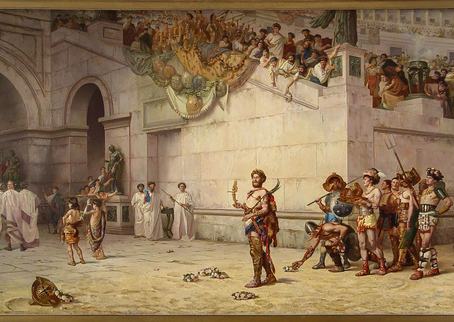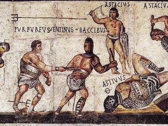 Az első gladiátorküzdelmet időszámításunk előtt 264-ben rendezték, nem a Colosseumban, hanem egy temetésen. Egy jó darabig csak különleges alkalmakkor tartottak ilyen látványosságokat, például a császár születésnapján, ám lassan politikai eszközzé váltak, amelynek segítségével meg lehet szerezni a nép támogatását, biztosítani lehetett jóindulatát.