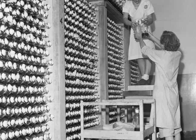 Végül létrehoztak egy leginkább egy régimódi benzineskannára hasonlító kerámia erjesztőedényt – a nőkből álló hattagú technikuscsapat, a „penicillin-lányok” ilyenekben gondozták a penészgombákat, hetente néhány milligrammnyi antibiotikumhoz jutva.