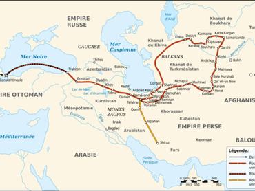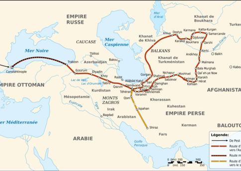 Vámbéry 1863. március 28-án csatlakozott egy bukharai hadzsi karavánhoz, velük vándorolt Közép-Ázsia sivatagos vidékein Erzerumon és Tabrizen keresztül Kházendrán tartományba. Innen a Kaszpi-tengeren átkelve jutott el Khivába, majd indult tovább Bukharába.