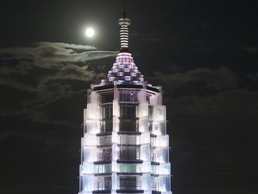 A torony másik figyelemre méltó sajátossága az éjszakai megvilágítása volt. A külső részen elhelyezett olajmécsesek és gyertyák olyan varázslatos hatást keltettek, mintha az égő csillagok egy darabja ereszkedett volna a földre. Egyes korabeli utazók és misszionáriusok, akik látták a tornyot,