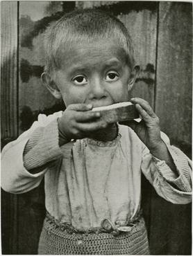 Laci apja alkalmi munkákból igyekezett eltartani magát és családját, vagyis gyakran munkanélküli volt; a két felnőtt és három gyerek egy fáskamrából átalakított, fűtés nélküli „lakásban” élt, de még ezért is havi húsz pengőt kellett fizetniük, ami gyakran a duplája volt a családfő által megkeresett pénznek. Miután kilakoltatták őket, három hétig tanyáztak egy üres telken a szabad ég alatt, mire nagy nehezen sikerült új lakást találniuk, két hónap elmulasztott lakbér után azonban innen is távozniuk kellett. Az ötfős család összesen két adag ebédet és két üveg tejet kapott az ingyenkonyháról, nem csoda tehát, hogy az apró, lesoványodott Laci úgy falja a kenyeret, mintha az éppen szökni akarna, miközben nagy, könyörgő szemekkel tekint a fényképező objektívjébe.
