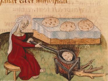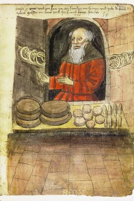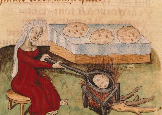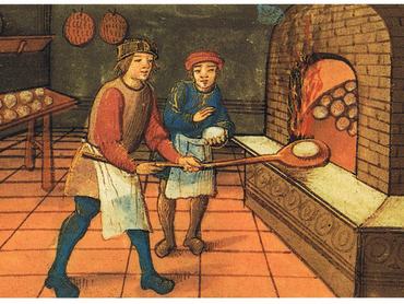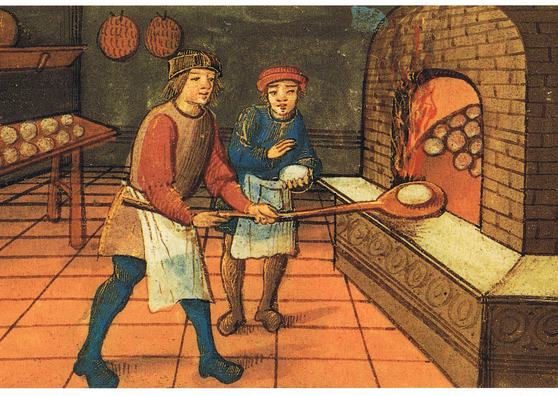 A legolcsóbb, legkönnyebben beszerezhető és viszonylag sokáig elálló étel a kenyér volt, amely a középkori szegények étrendjének alapját képezte, s a városlakók legtöbbször a pékségben jutottak hozzá. Ma már furcsán néznének ránk, ha egy jókora húsdarabbal állítanánk be a pékhez, és azt kérnénk tőle, hogy csomagolja be a kenyérbe, és azzal együtt süsse meg, de a középkorban ez teljesen megszokott volt: 1350-ben Londonban még törvényt is hoztak, amely megtiltotta a pékeknek, hogy egy pennynél többet kérjenek a saját hússal érkező vásárlóktól.