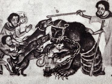 Nem csak a macskákkal bántak kegyetlenül a középkori népek: a parasztok kedvelt szórakozása volt egymásnak uszított állatok küzdelmét nézni, szurkolni a „párbajozóknak” és önfeledten izgulni, melyik állat végez előbb a másikkal. Az egyik legnépszerűbb „állathecc” az ún. medveviadal volt, melyben az elfogott medvét egy verembe taszították, leláncolták, majd kiéheztetett kutyákat uszítottak rá – általában a jóval nagyobb termetű állat került ki győztesen a „küzdelemből”, a nézők pedig – akik akár messzi falvakból is elzarándokoltak egy-egy hasonló eseményre – önfeledten éljeneztek, miközben a medve kegyetlenül széttépte a ráküldött ebeket.