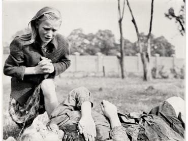 Az éhes nők a bombatámadás sokkjából felocsúdva folytatták az elkeseredett munkát, a repülő azonban visszatért, és gépfegyverrel kezdte sorozni a környéket – a mezőn dolgozó hét asszonyból ketten meghaltak az orvtámadásban, a többieknek viszont sikerült fedezéket találniuk. Bryan a pusztítás helyszínét dokumentálta Leica fényképezőjével, amikor egy 12 év körüli szőke kislány bukkant fel, és futott oda az egyik holttesthez, elkeseredetten próbálva felébreszteni őt „álmából”. A Kazimiera Kostewicz névre hallgató lány nem értette, két évvel idősebb nővére, Anna, miért nem mozdul vagy szólal meg, mígnem rájött a tragikus igazságra, és eleredtek a könnyei.