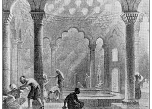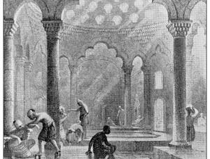 A török társasági élet sokkal inkább a bazárokban és a törökfürdőkben zajlott. Aki megengedhette magának, természetesen eljárt a fürdőbe, ahol a fürdőszolgák alaposan lecsutakolták, megborotválták, megdögönyözték, majd a különböző hőfokú gőzfürdőket és medencéket végigjárva frissen és fiatalon kerültek ki a fürdőkből. Saussure ennek a szokásnak – és a mértékletes evésnek – tulajdonítja a törökök általános jó egészségi állapotát. De nem csak a szórakozás miatt mentek a fürdőbe: „Mihelyt úgy érzik, hogy bemocskolódtak, vagy mert a feleségükkel érintkeztek, vagy mert bort ittak, vagy mert valamilyen tisztátalan dologhoz nyúltak, kötelesek fürdőbe menni, hogy megtisztuljanak”. A szegényebb rétegek is megtalálták a módját a fürdőzésnek: „Ide nem messze egy tócsás hely vagyon (...). Ebben az időben, akiknek valami nyavalyájok vagyon, abban a sárban megferednek; negyven, ötven mélyföldniről ide eljőnek az emberek szekereken feleségestől, gyermekestől. Húsz vagy harminc szekeret meg lehet látni a sár körül, és abban a sok asszony, férfi, gyermek úgy hevernek, nem különben, valamint a sertések” – számolt be a különös wellnessről Mikes.