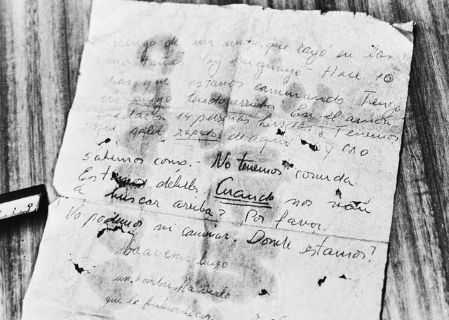 Az öszvérhajcsár másnap, pirkadatkor visszament a helyszínre. Kenyeret és sajtot dobott át a folyón a túlélőknek, majd egy kőre kötözött egy papírlapot és egy ceruzát, és azt is áthajította. Fernando Parrado ezt írta: „Egy repülőgépről jövök, amely odafent a hegyekben lezuhant. Uruguayi vagyok.