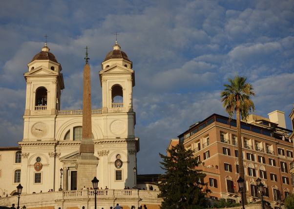 Francia nemzeti templom összesen öt található Rómában, ezek közül az egyik a Pincio hegyen áll. (A félreértések elkerülése végett: a Pincio nem egyike Róma hét dombjának, amelyeken a várost annak idején alapították, ám az Aurelianus római császár által 270 és 273 között épített városfalon belül található.) A Trinità dei Monti templomot XII. Lajos francia király építette föl a 16. század elején, a Nápolyi Királyság elfoglalásának alkalmából (a francia uralom egyébként nem tartott sokáig: 1504-re újra spanyol kézbe került a terület).