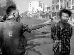 Eddie Adams, az Associated Press (AP) 35 éves fotóriportere, a háborús szituációk tapasztalt krónikása Saigonban tartózkodott az ostrom idején: február 1-jén a város Cho Lon negyedében, egy buddhista templom közelében járt éppen, amikor arra lett figyelmes, hogy a délvietnámi országos rendőrparancsnok, Nguyễn Ngọc Loan tábornok egy kockás inget viselő, fiatal férfit vonszol magával a katonai dzsipje felé. A fotós azt hitte, az illetőt kikérdezés céljából vezetik el, és ösztönösen úgy döntött, megörökíti az érdekesnek tűnő eseményt – legnagyobb megdöbbenésére azonban Loan tábornok elővette a revolverét, és a nyílt színen agyonlőtte az őrizetbe vett férfit.