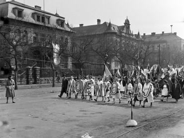 Május elsejei felvonulás a Vorosilov úton (1955).