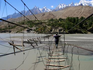 A pakisztáni Hussaini-függőhidat tartják bolygónk legveszélyesebbjének. A Gilgit-Baltisztán régiójában található Hunza folyó két partjának lakói által, helyi anyagokból épített függőhídak nem állták ki a próbát, instabillá, így használhatatlanná váltak. Maradt viszont egyetlen, ez a ránézésre is hajmeresztő átkelő, amely a tengerszint fölött 2600 méter magasságban, gigantikus hegyek ölelésében köti össze a két partot.