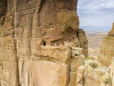 Az Abuna Yamata Guh templom Etiópiában nagyjából 2580 méter magasan helyezkedik el egy függőleges sziklafalba vájva.